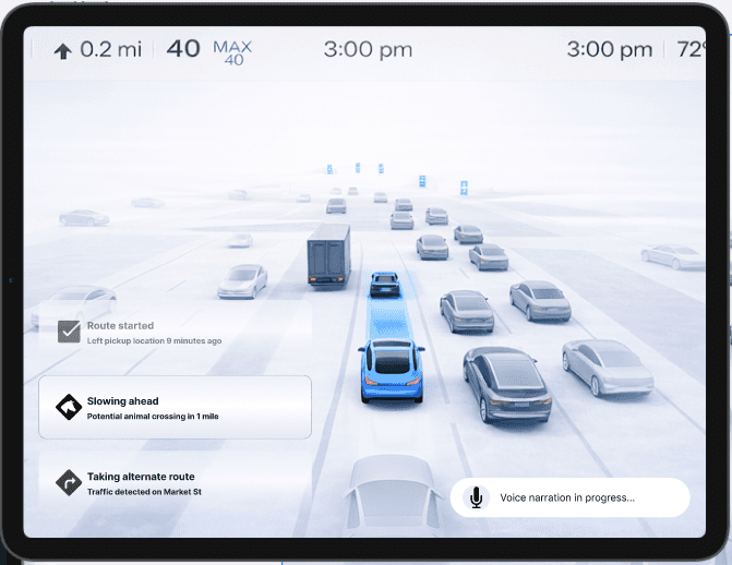 When there's no driver to make eye contact with, no voice explaining a detour, and no visible human making decisions — how does an interface fill that void? This case study explores three systems that bridge the gap between what an AV knows and what a passenger feels.